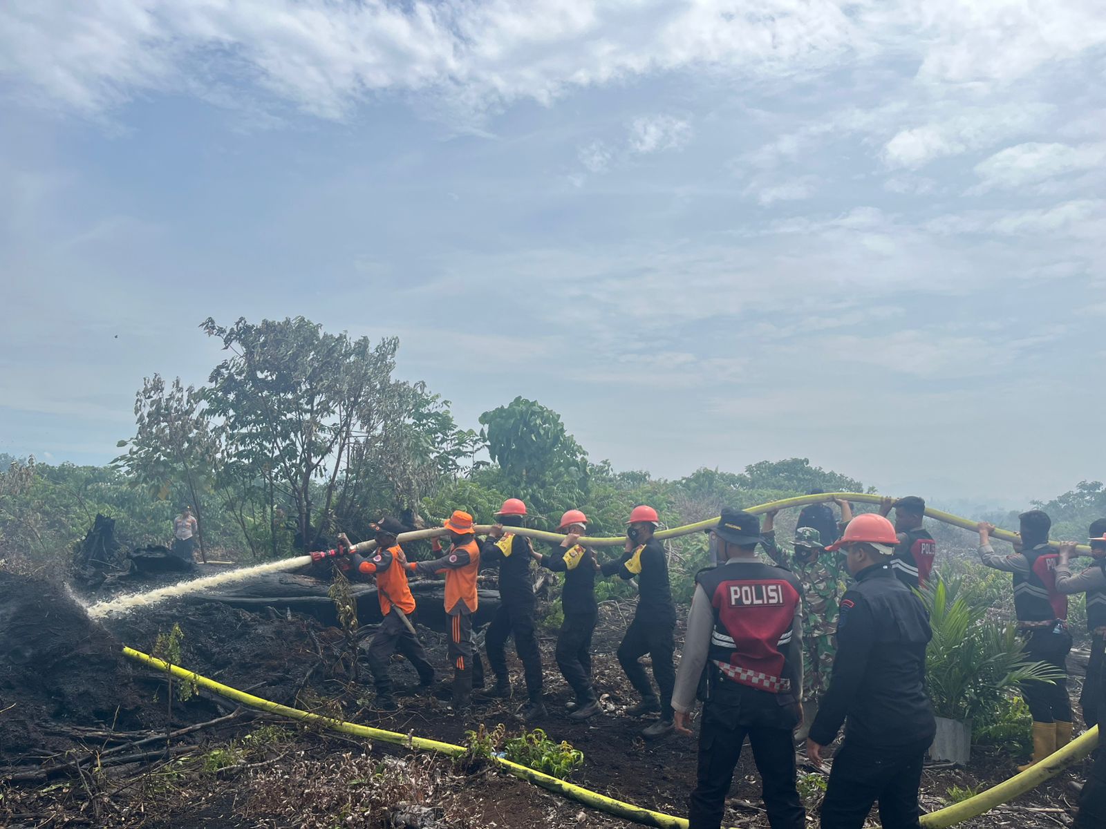 Personel Satuan Brimob Polda Aceh Batalyon C Pelopor melalui Kompi 3 Batalyon C Pelopor bersama personel Polres Nagan Raya serta BPBD Kabupaten Nagan Raya bergerak cepat melaksanakan quick response dalam penanganan kebakaran hutan dan lahan (Karhutla) milik masyarakat di Desa Cot Rambong, Kecamatan Kuala Pesisir, Kabupaten Nagan Raya,Selasa,(26/08/2025).