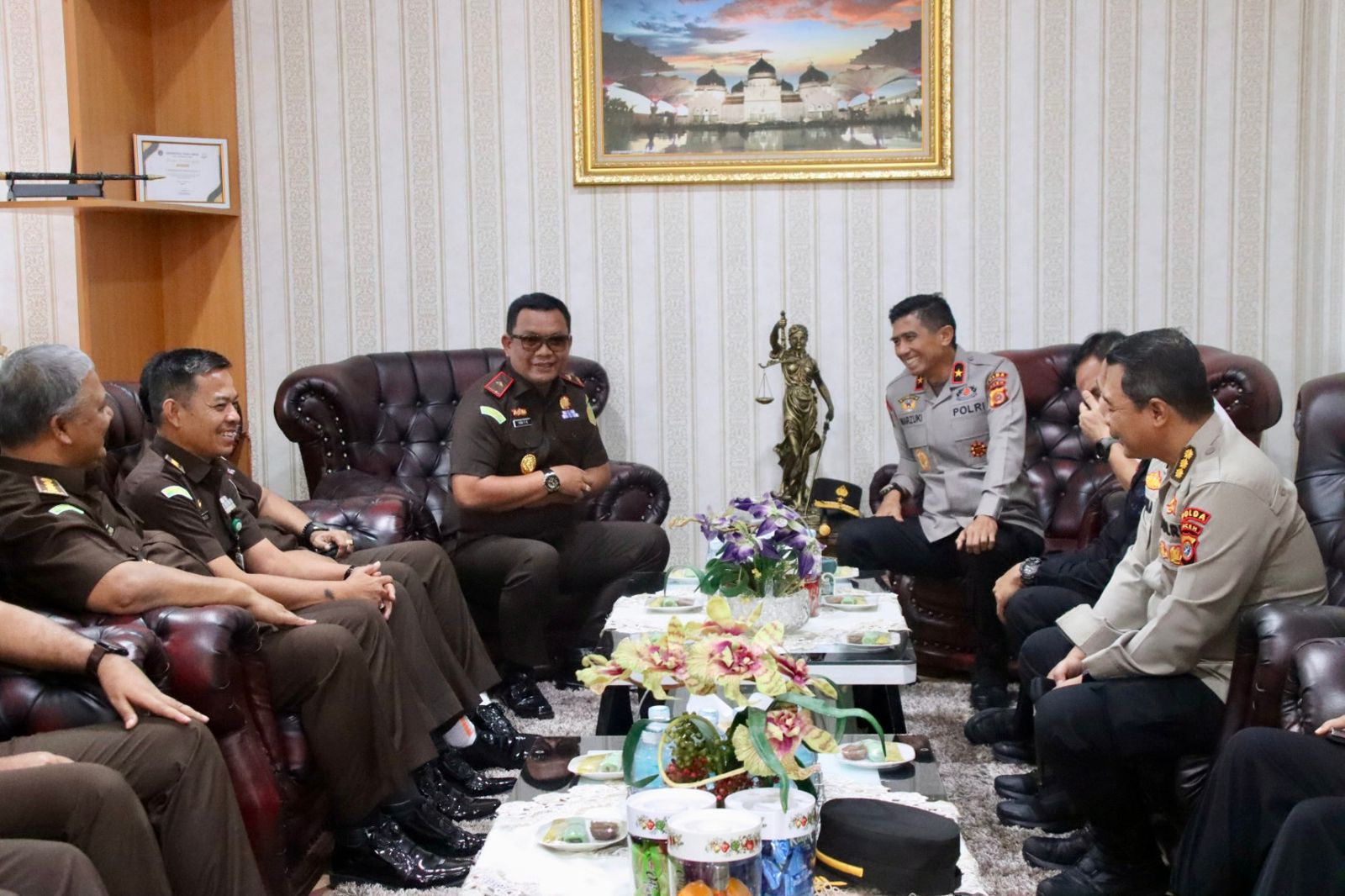 Kapolda Aceh Brigjen Pol Drs. Marzuki Ali Basyah, melakukan Silaturahmi dengan Kajati Aceh, Yudi Triadi, di Kantor Kejati Aceh, Senin, 25 Agustus 2025. Pertemuan tersebut berlangsung dalam suasana akrab dan penuh kekeluargaan.