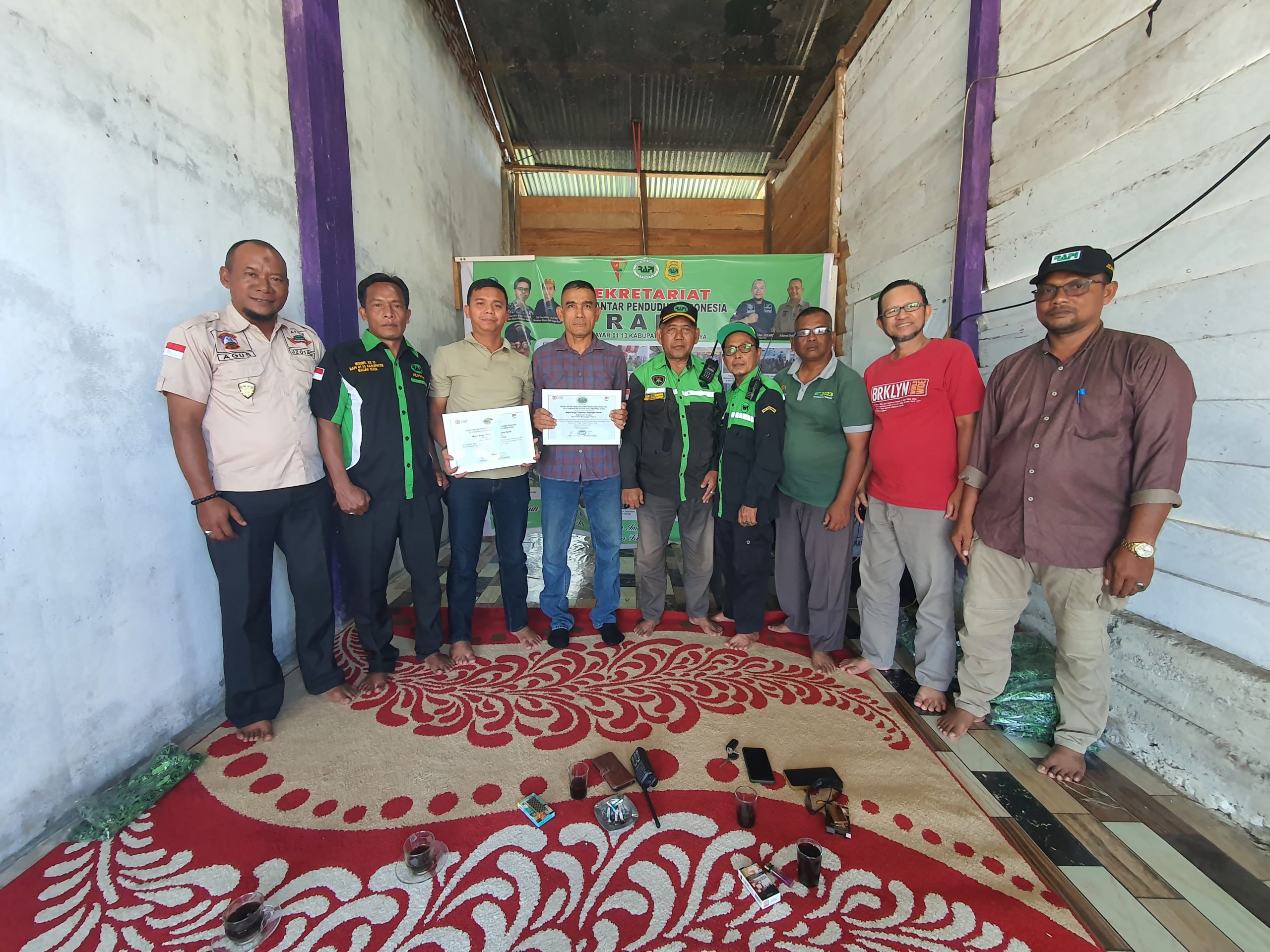 Radio Antar Penduduk Indonesia (RAPI) Kabupaten Nagan Raya menggelar acara penyerahan sertifikat penghargaan dan baju batik RAPI, Sabtu 23 Agustus 2025 bertempat di Sekretariat RAPI Nagan Raya, Desa Keude Linteng, Kecamatan Seunagan Timur Kabupaten setempat.