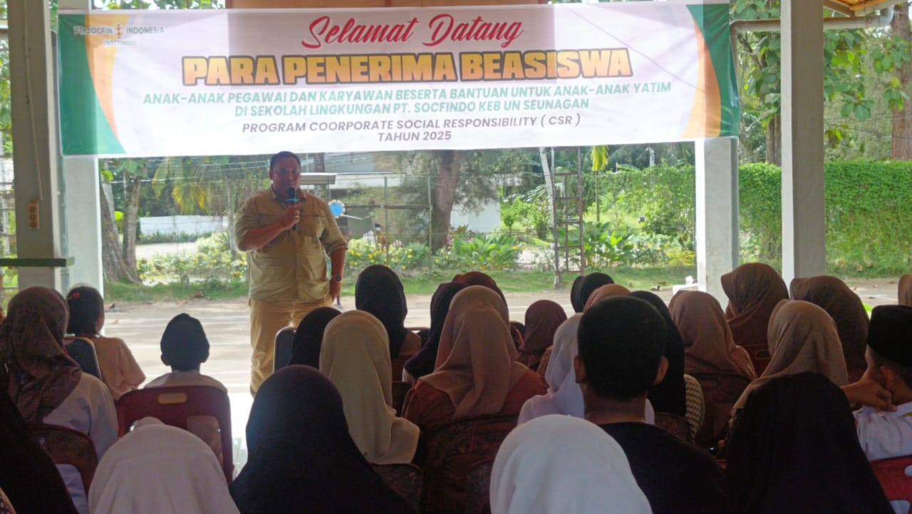 Pengurus PT Socfindo Seunagan, Hendri M.P. Siregar dalam sambutannya memotivasi para pelajar, pihaknya mendoakan para pelajar kelak bisa berhasil dengan cita citanya